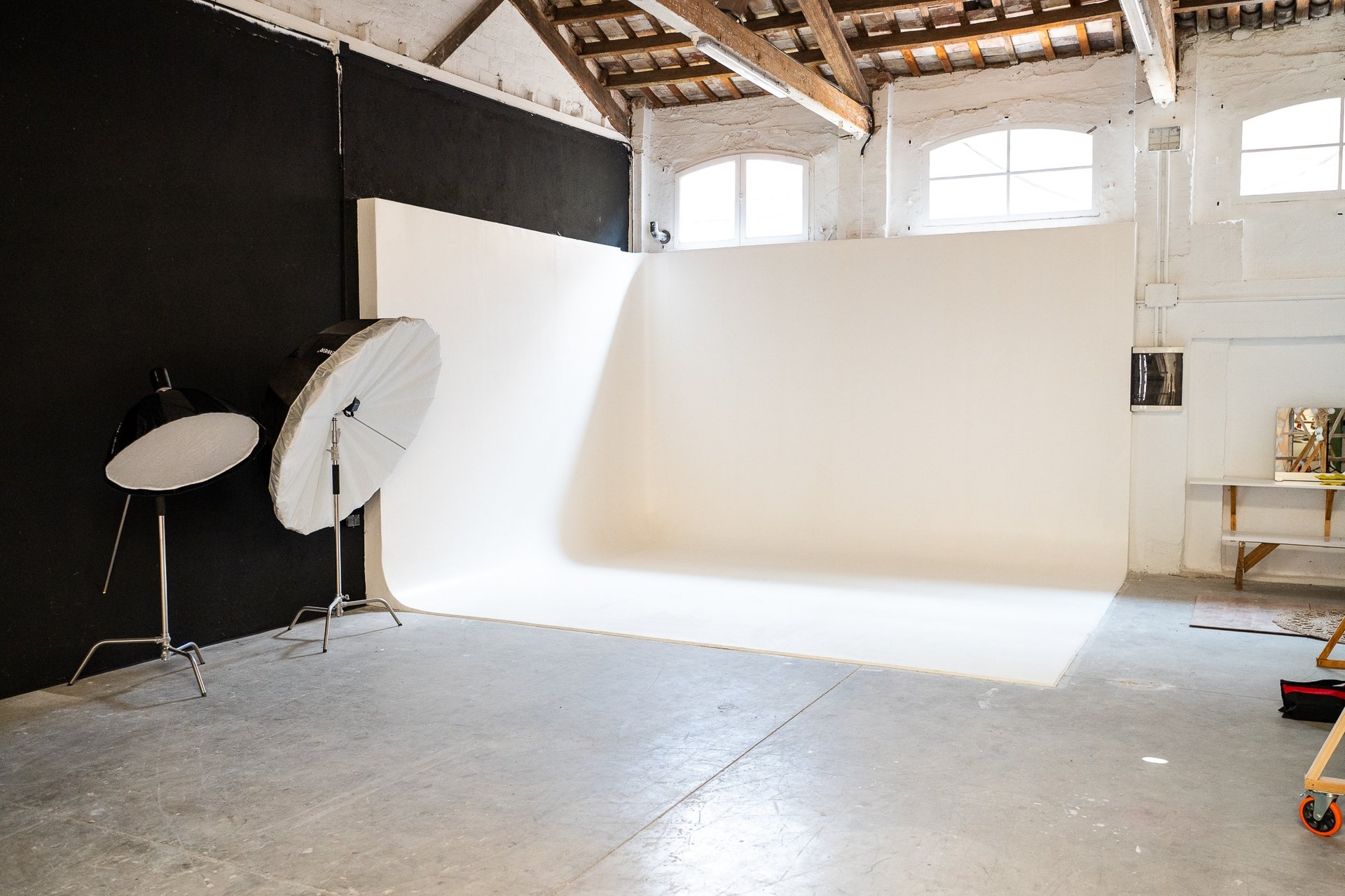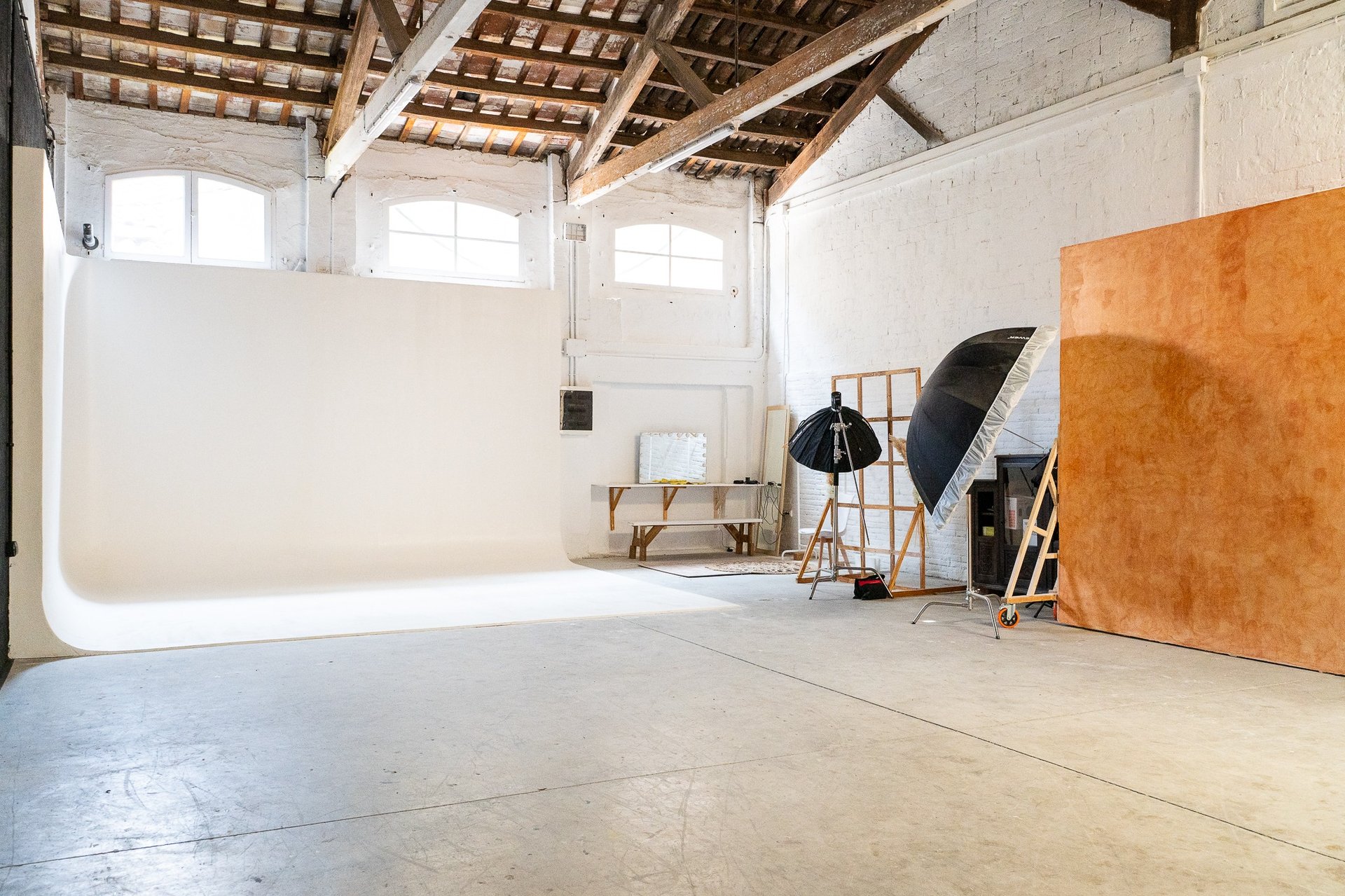 Ciclorama blanco de obra (sin esquinas, fondo infinito)
